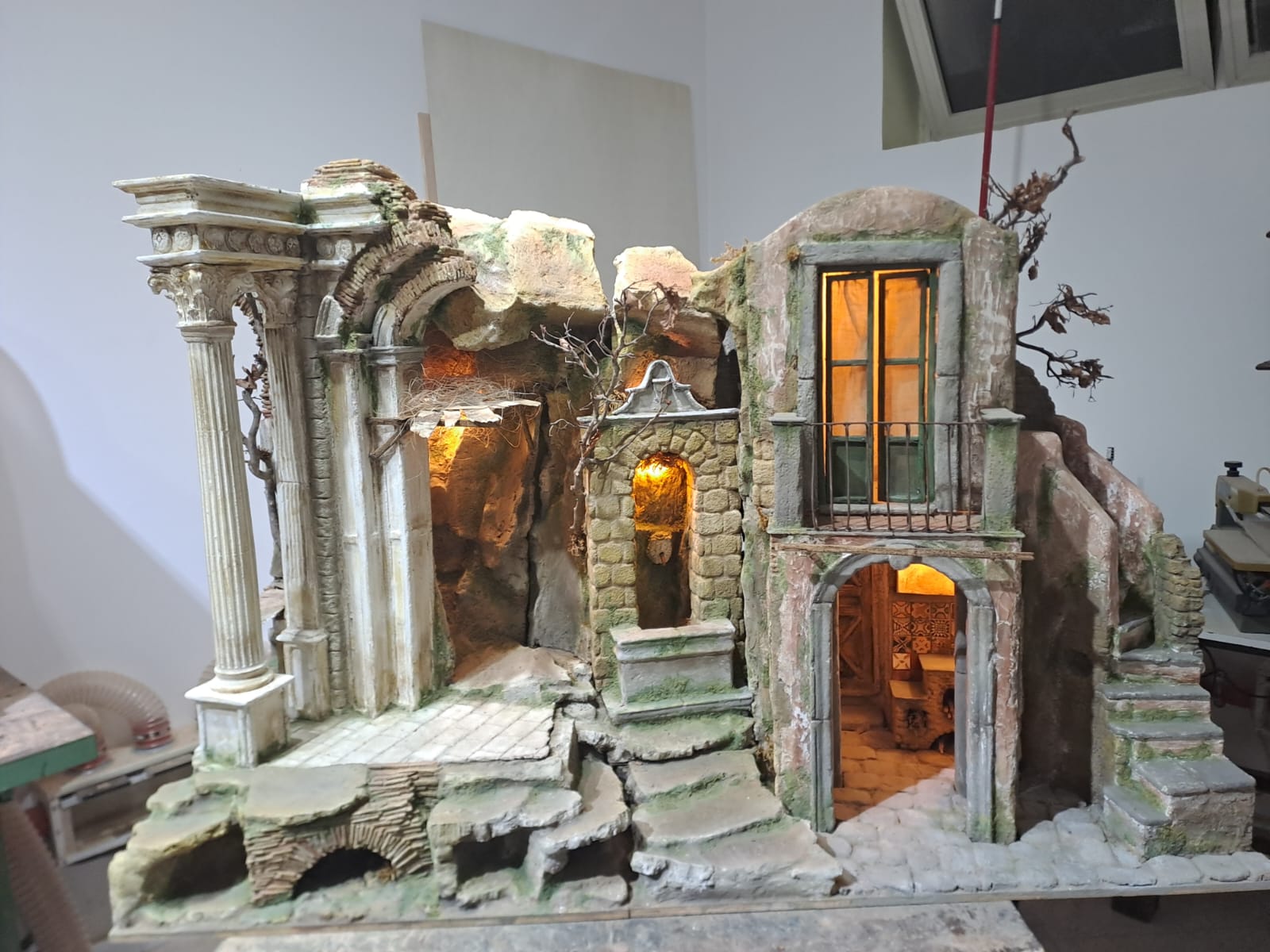 Presepe 700 napoletano in legno e sughero per pastori da 30 cm Larghezza 160 cm Profondità 80 cm Altezza 110 cm