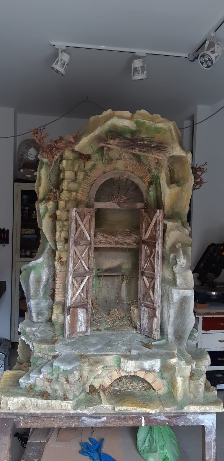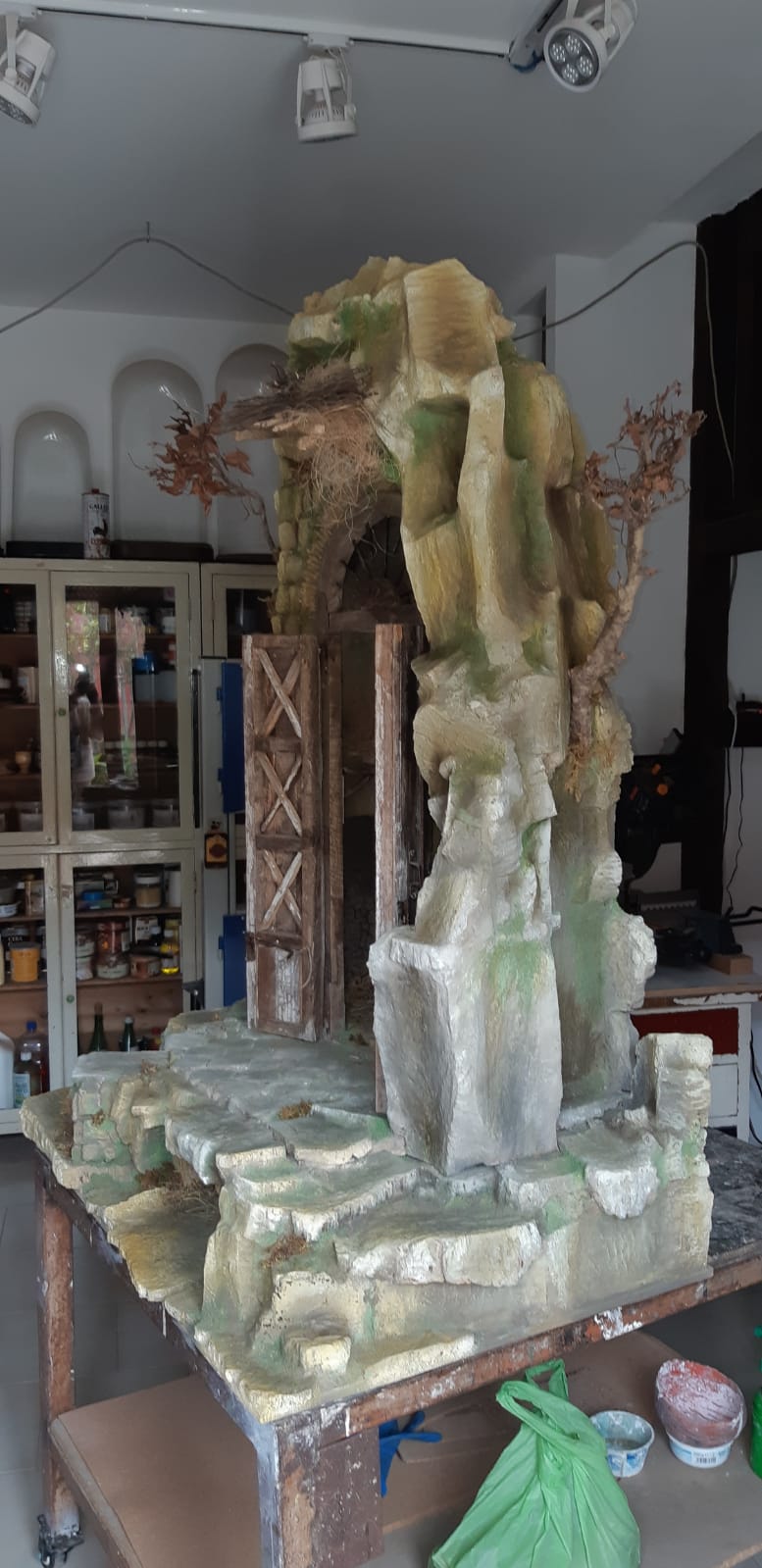 Scoglio in casa rupestre in legno e sughero per natività da 40 cm